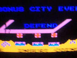 The aiming cross left a trail, and the red arrows and cities had the same flashing coloured box around them (see picture). Some experimenting with mame revealed that when the cities were drawn it read what was behind them first, as did the moving cross so it could be assumed that the reading of video ram was wrong. However, the video ram had already checked out OK, so it had to be something that was only used for this feature. Missile Command has a couple of hardware blitters that read pixels from separate video banks, and the bank causing the problem returned 2 bits via P7 (74153), R7 (7475) and R6 (74125). P7 checked out OK, but R7 and R6 were not so easy to test - replacing both chips solved the problem.